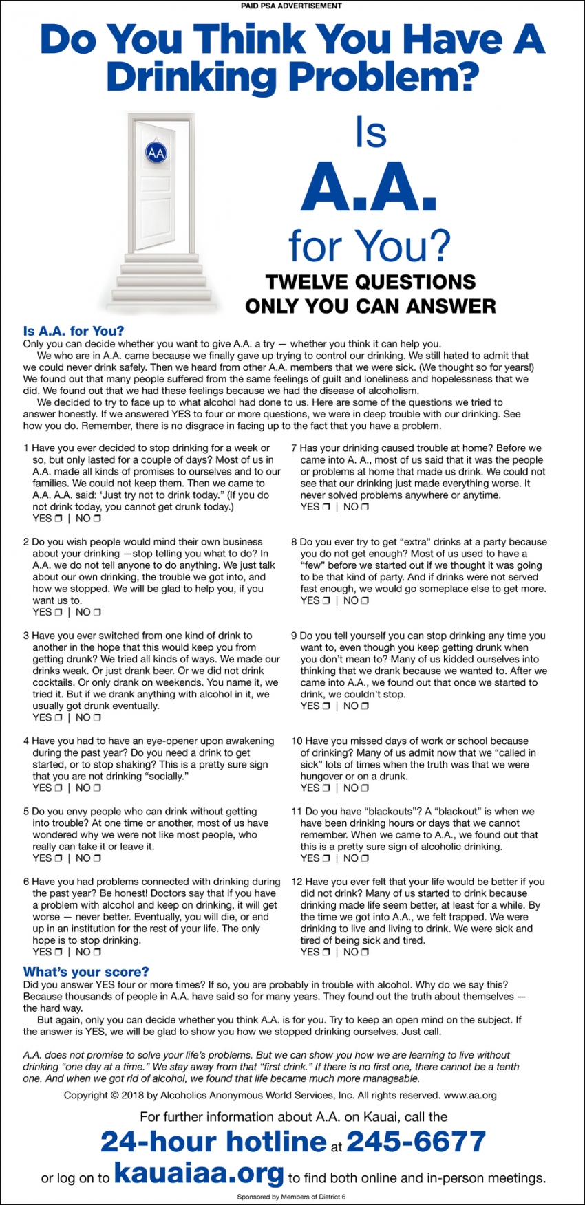 . A.A. - Alcoholics Anonymous on Kaua‘i Organizations Ads from The Garden Island