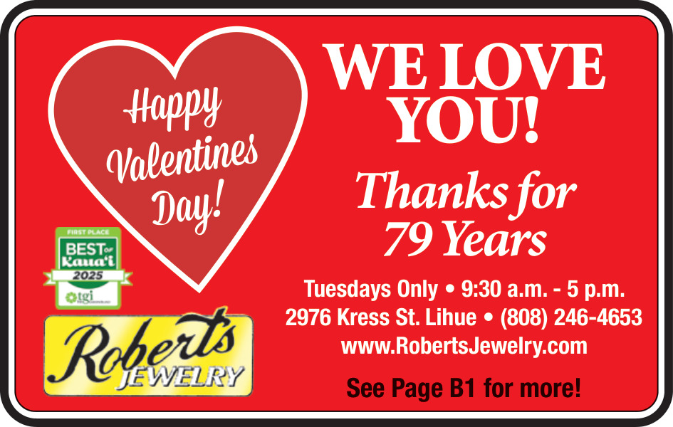 Feb 14, 2026. Robert's Jewelry Jewelry Ads from The Garden Island