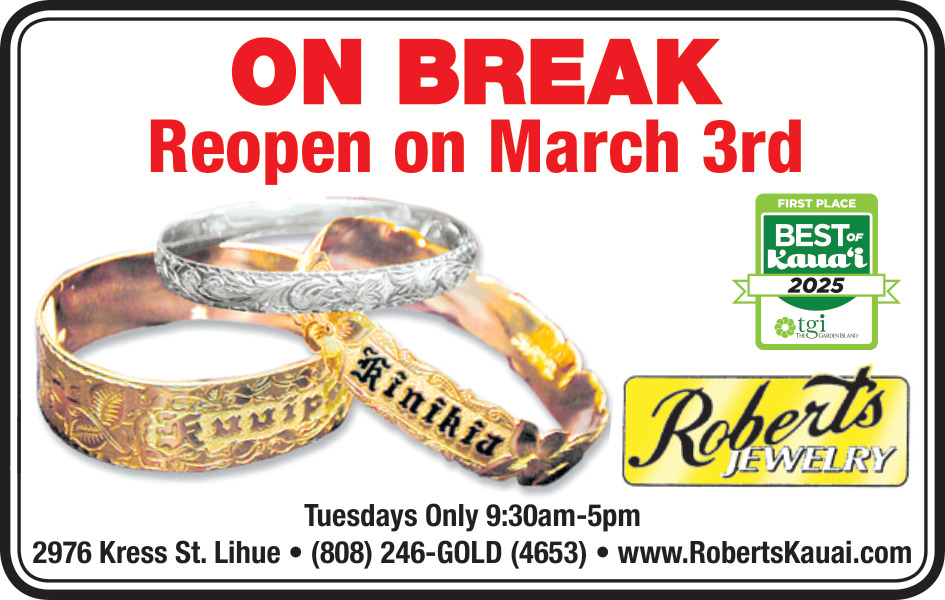 Feb 18, 2026. Robert's Jewelry Jewelry Ads from The Garden Island